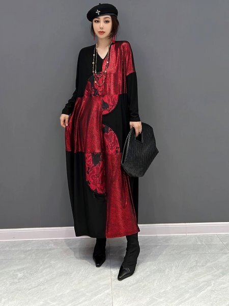 - jd 2509 ワンピース Vネック ゆったり 洋服ミックス アンティーク風 ロマンファッション ナチュラル フリーサイズ 縫い合わせ