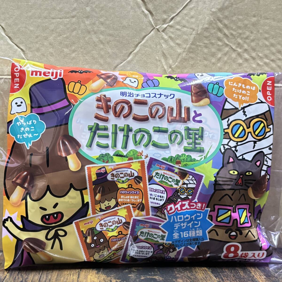 - チョコの旨み広がるハロウィン限定!きのこの山とたけのこの里が詰まった楽しい8袋入アソート×8袋-I308