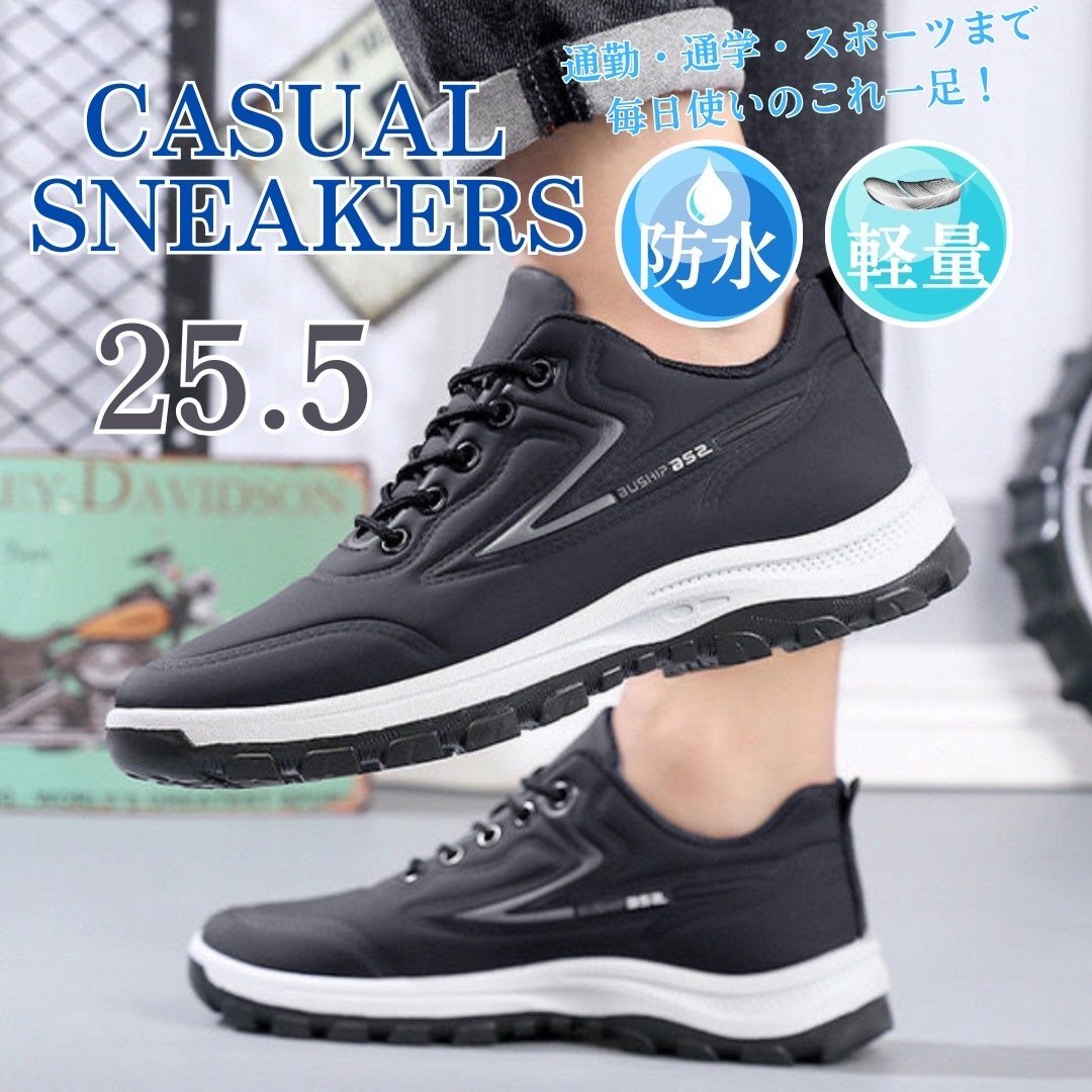 - スニーカー メンズ レザーシューズ 合革 紳士靴 防水 カジュアル 通勤 通学 履きやすい 滑りにくい グレー 25.5
