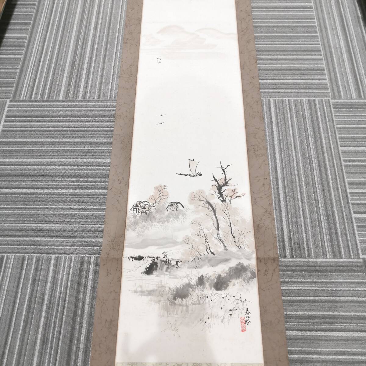 - 【49】風景 山 巻物 掛け軸 掛軸 日本画 骨董 日本書 伝統品 骨董品 時代物 年代物 美術品 芸術品 コレクション