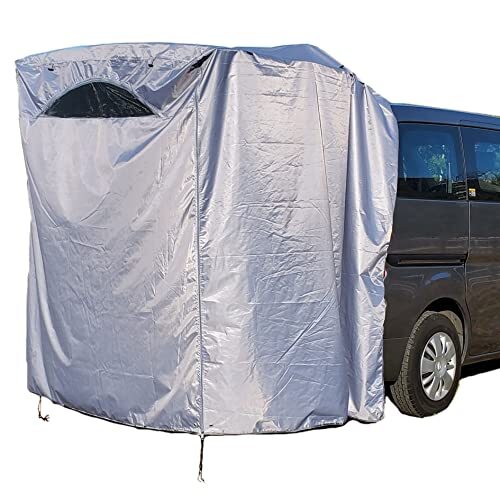 - iBeamed リアゲートタープ 更衣室 リビング タープ 日除けに かぶせ型 (遮光メタルグレー窓付 幅140)