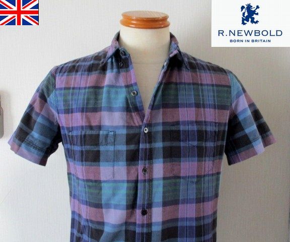 > ★ メンズ R.NEWBOLD アールニューボールド チェック柄 コットン 半袖 ボタンダウン シャツ Mサイズ