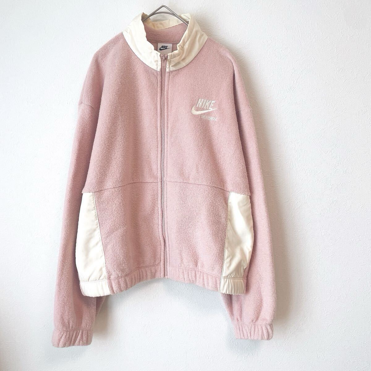 - NIKEナイキ ウィメンズ NSW PLSH ヘリテージ ジャケット裏起毛ブルゾン アウターLサイズ オフホワイト白ホワイト ジップアップ ロゴ長袖