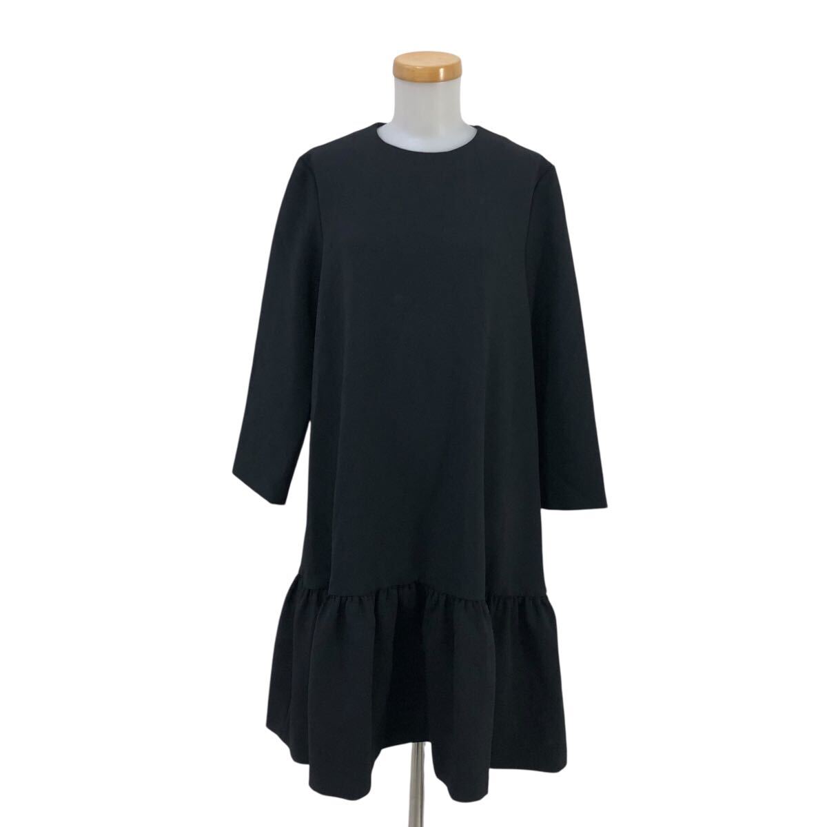> 9Nm325-55 美品 EDIT 長袖 裾 フリル デザイン ストレッチ ワンピース ワンピ ドレス ブラック 黒 レディース S