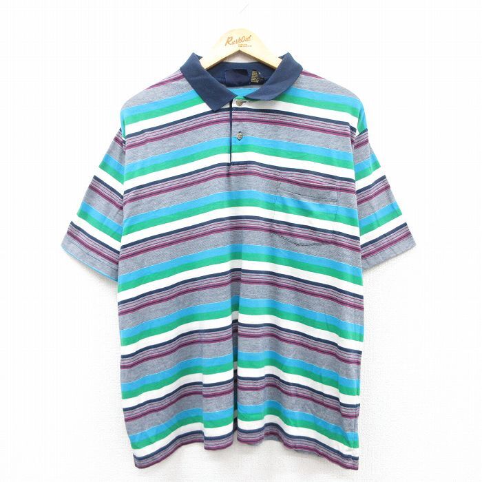 - XL/古着 半袖 ポロ シャツ メンズ 大きいサイズ 紺他 ネイビー ボーダー spe 25may23 中古 トップス