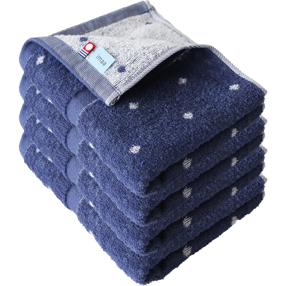 - 真空圧縮パック 綿100% 日本製 吸水速乾 薄手 ふわふわ Dotネイビー 4枚セット フェイスタオル 認定 今治タオル ima