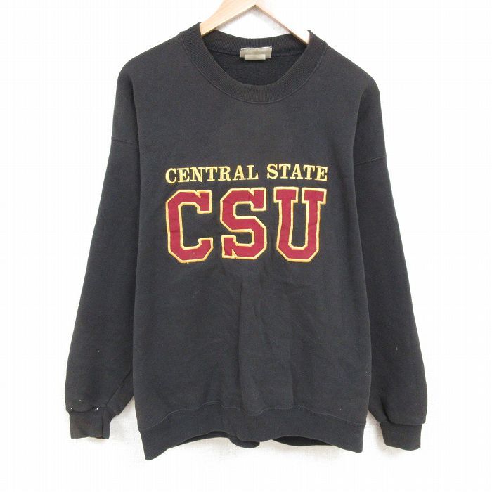 - XL/古着 リー 長袖 スウェット メンズ 90s CSU 刺? 大きいサイズ クルーネック 黒 ブラック 25apr28 中古 スエット トレーナ