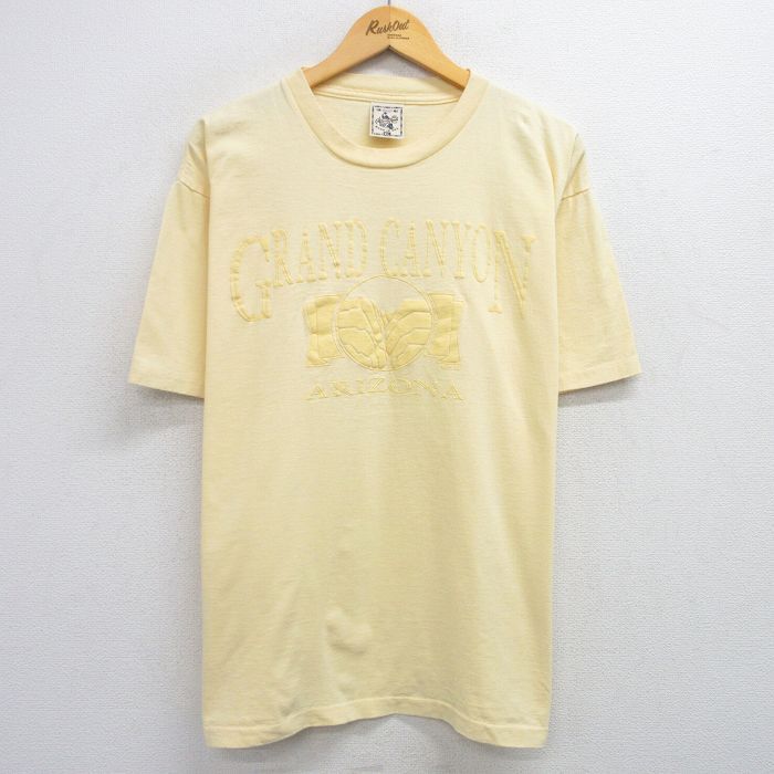 > XL/古着 半袖 ビンテージ Tシャツ メンズ 90s グランドキャニオン アリゾナ 大きいサイズ コットン クルーネック 黄 イエロ