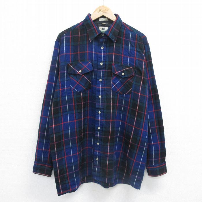 - XL/古着 バンヒューセン 長袖 シャツ メンズ 90s ロング丈 紺他 ネイビー チェック 23nov17 中古 トップス