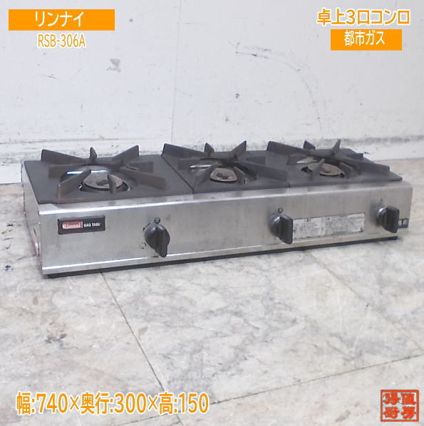 - リンナイ 卓上3口コンロ RSB-306A 都市ガス 740×300×150 中古厨房 /25C2917Z