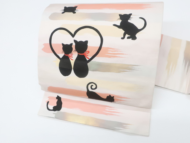 - 《古美術京松》リサイクル着物 九寸名古屋帯 オリジナル 太鼓柄 猫 正絹 sok7b09-50