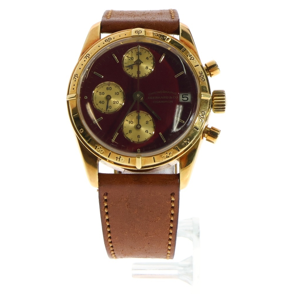 - EBERHARD チャンピオン クロノグラフ 赤文字盤 YG/AT レザーブレス自動巻き腕時計 ウォッチ ブラウン/レッド 30132-C