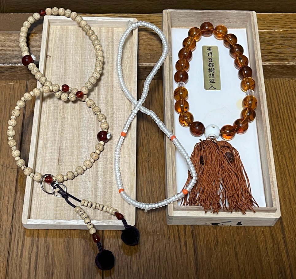 仏具屋さんのサンプル品です。本連2本と片連1本です。