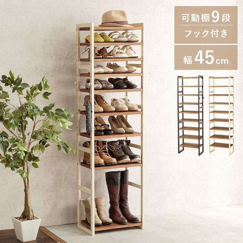 - たくさん収納できる下駄箱 オープンラック シューズラック 幅45 高さ164 ホワイト色