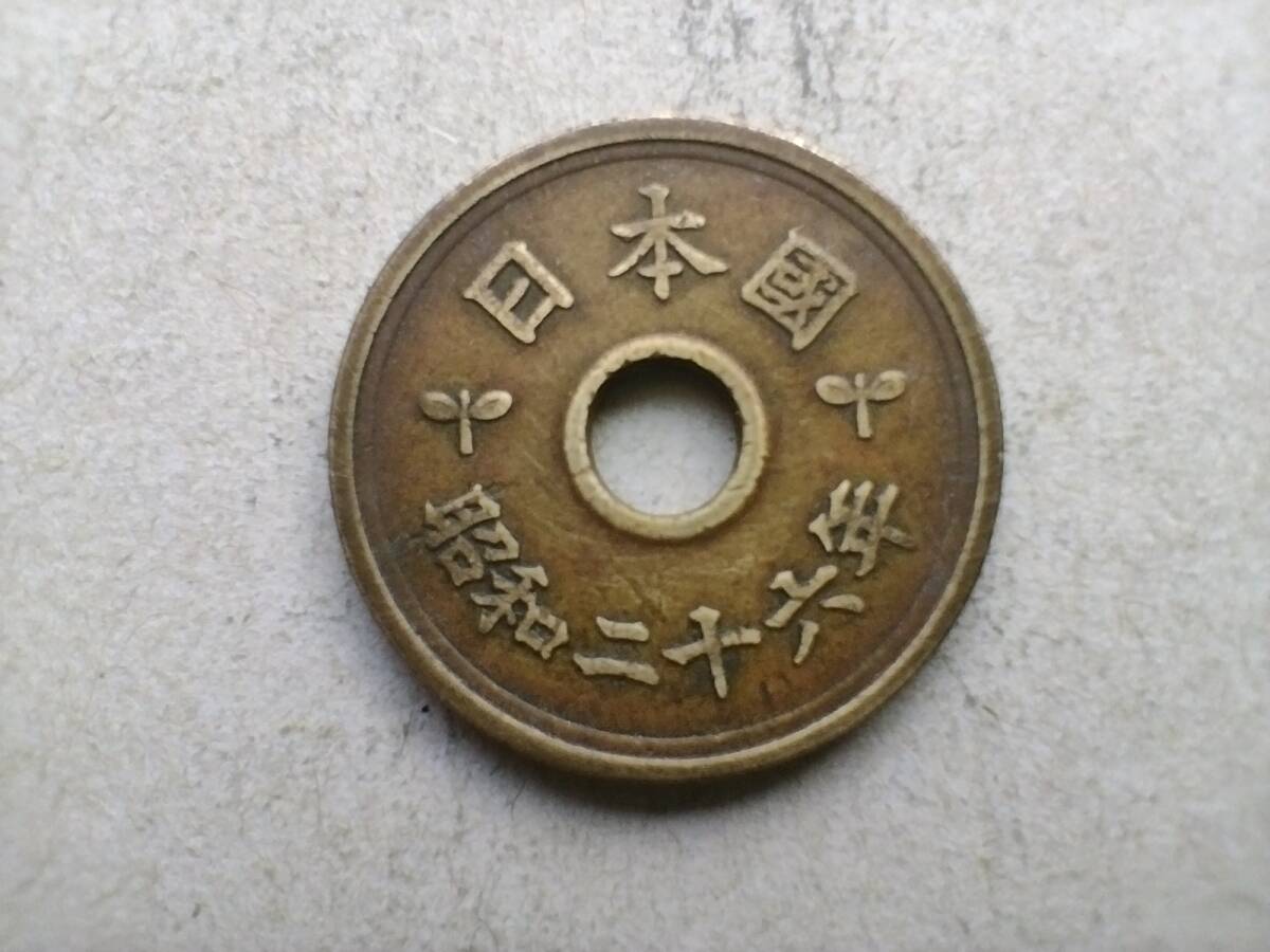 - 昭和26年 5円玉 昭和二十六年 1951年 一九五一年 五円玉 メダル コイン 貨幣 硬貨 フデ5 楷書体 筆文字 フデ文字 フデ五 ふでご 即決