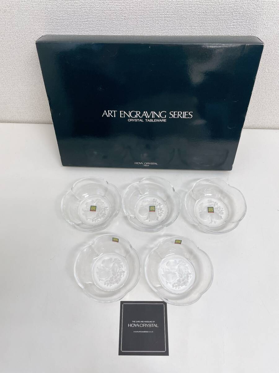 - 【HOYA レリーフ柄 ガラス小鉢 5点セット】インテリア/菓子皿/来客用/おもてなし/外箱入/A79-229