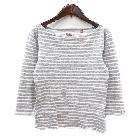 > ハリウッドランチマーケット HOLLYWOOD RANCH MARKET カットソー ボートネック ボーダー 長袖 2 M グレー /MN レディース