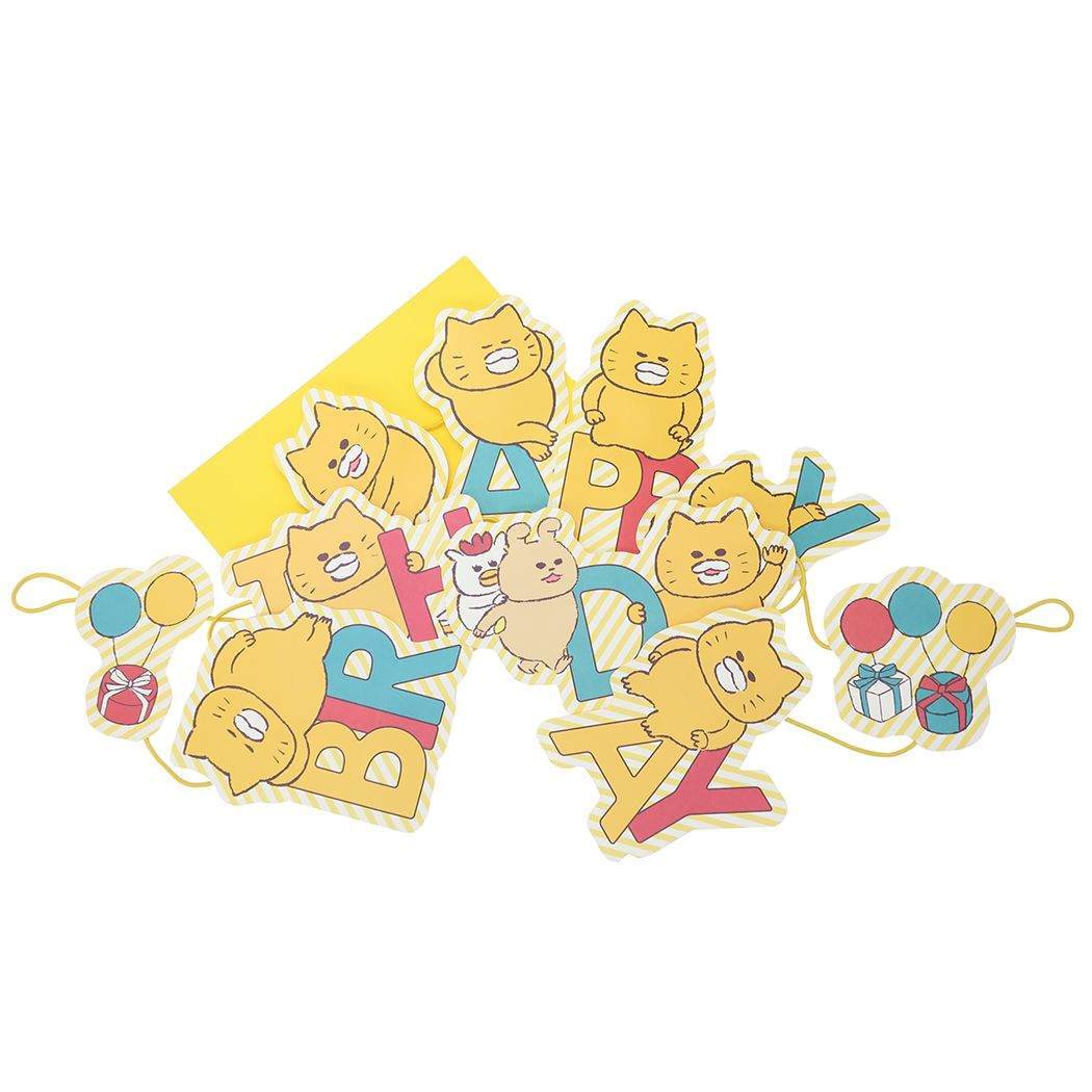 - グリーティングカード ノラネコぐんだん ガーランドカード バースデー GN-63 誕生日 メッセージカード 封筒付き
