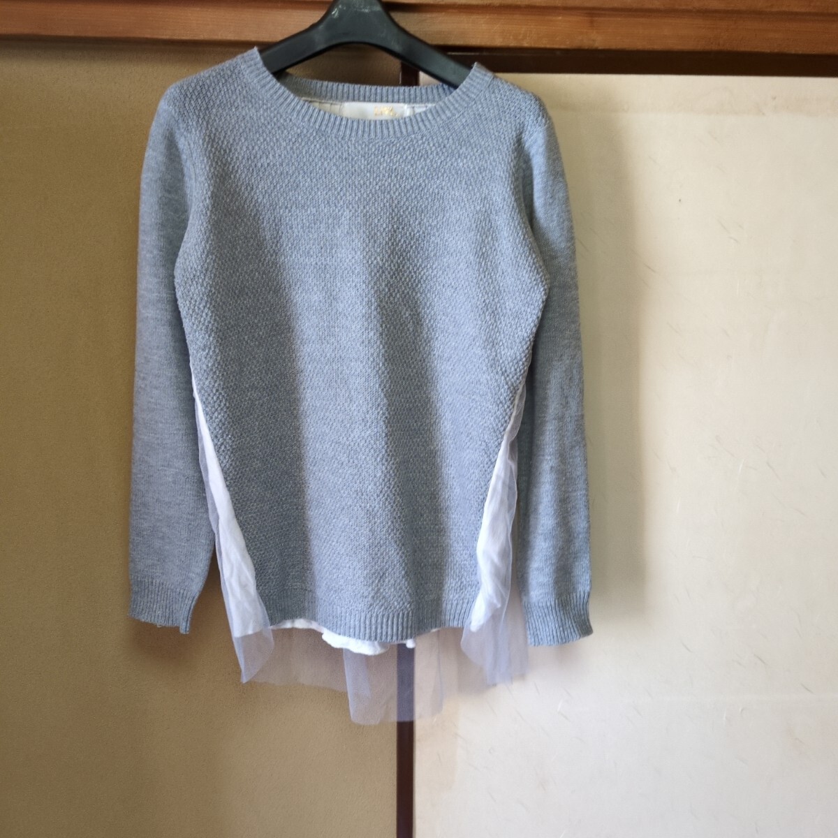 - LIVI itレイヤードチュール地切り替えニットシフォン長袖グレー