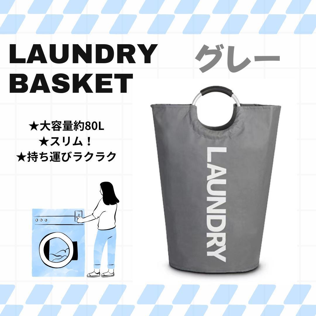 - 190G29 ランドリーバスケット 洗濯 かご 大容量 約80L 収納 グレー