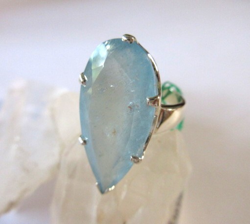淡いミルキー水色の大きなアクアマリンです。少しミルキーな透明感で、点々とした結晶や、小さな赤いインクルージョンの結晶が少し入っています。柔らかなテリがあります。非加熱。