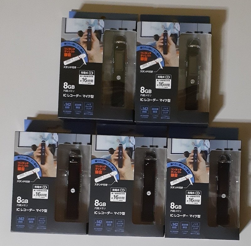 - 6678 ICレコーダー R8GIC-BK 5個セット 内蔵メモリ8GB マイク型 充電式 高音質録音リニアPCM(WAV) ノイズキャンセリング ワイドFM GRANPLE