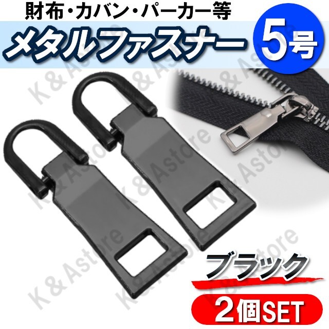 > 【匿名配送】ファスナー 引き手 2個セット チャック 持ち手 取っ手 引手 ジッパー ファスナートップ 修理 交換 取替 財布 ブラック 黒 5号