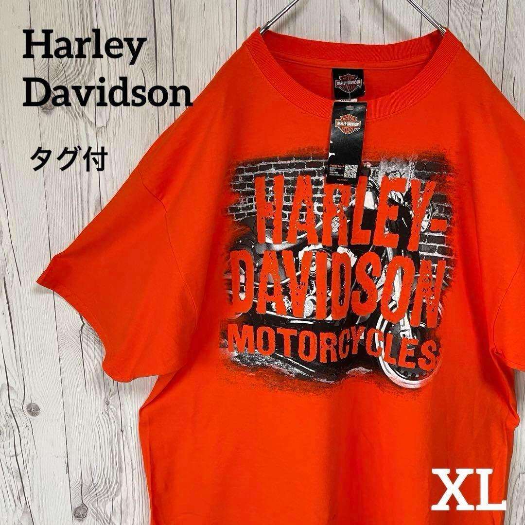 - ★タグ付★Harley Davidson ハーレーダビッドソン 半袖Tシャツ メンズXLサイズ オレンジ デカプリント