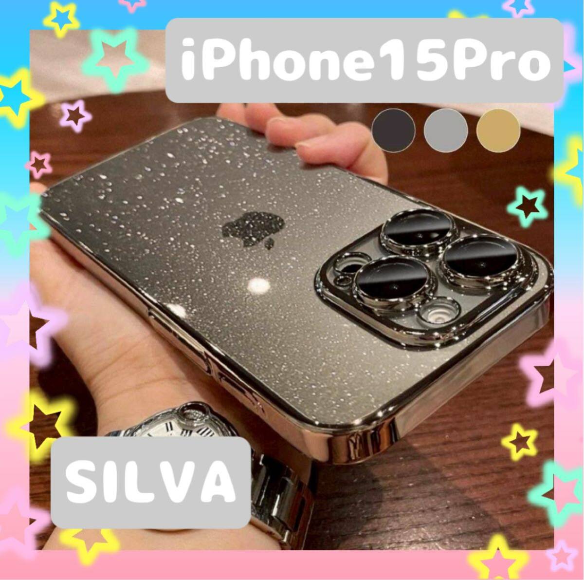 > iPhone15PRO ケース メタリック カメラレンズ保護 キラキラ シルバー