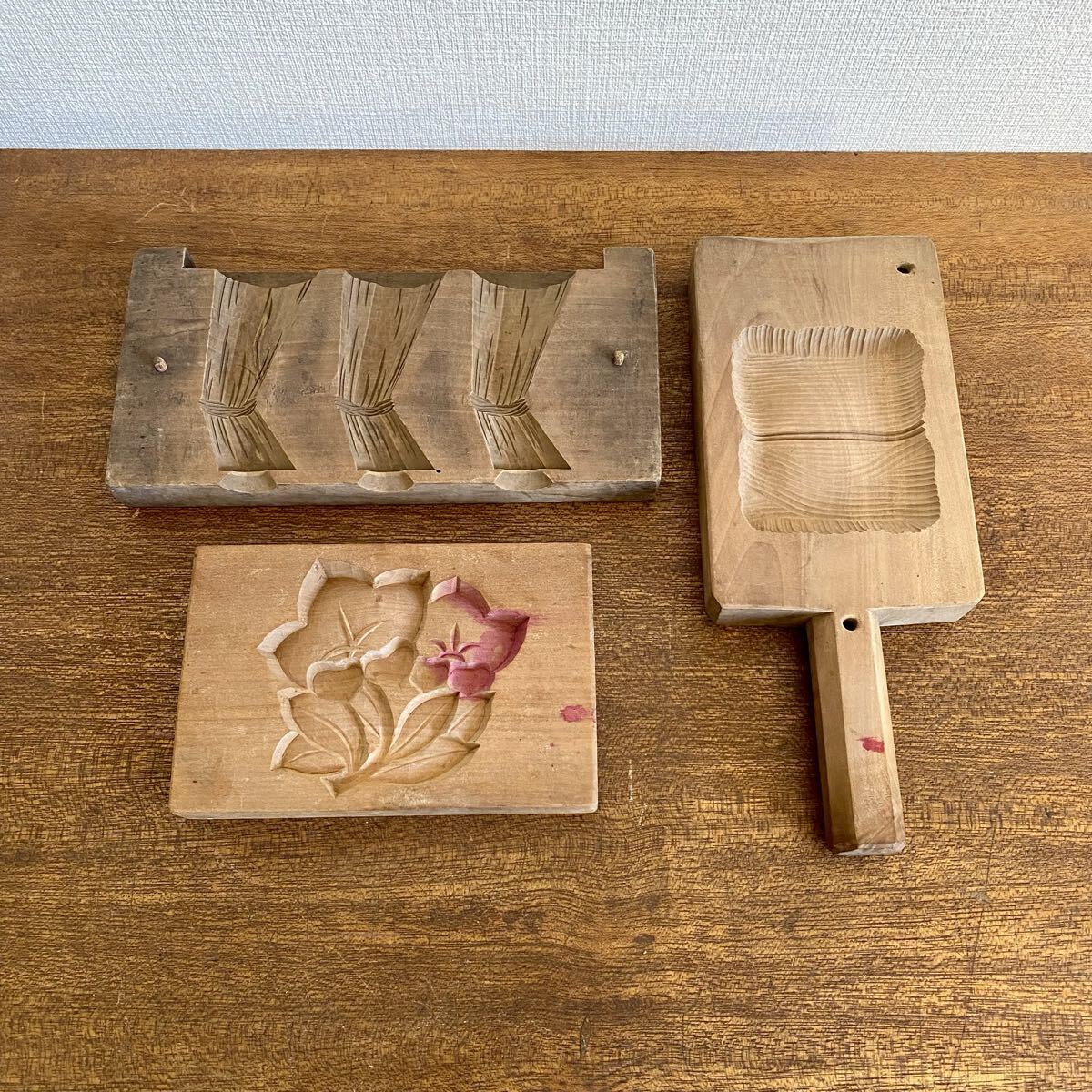 - アンティーク 菓子木型 菓子型 3点セット / 木製 落雁 和菓子 古道具 当時物