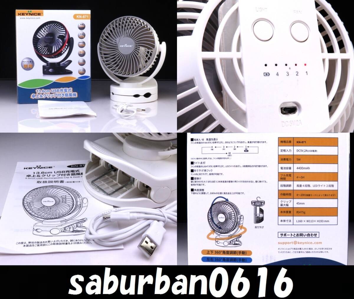 - etc0002 家電 扇風機 KEYNICE 卓上 グリップ付き 両用 風量4段階 ライト点灯 吊り下げ用フック 壁掛け 角度調整 上下360度 左右360度