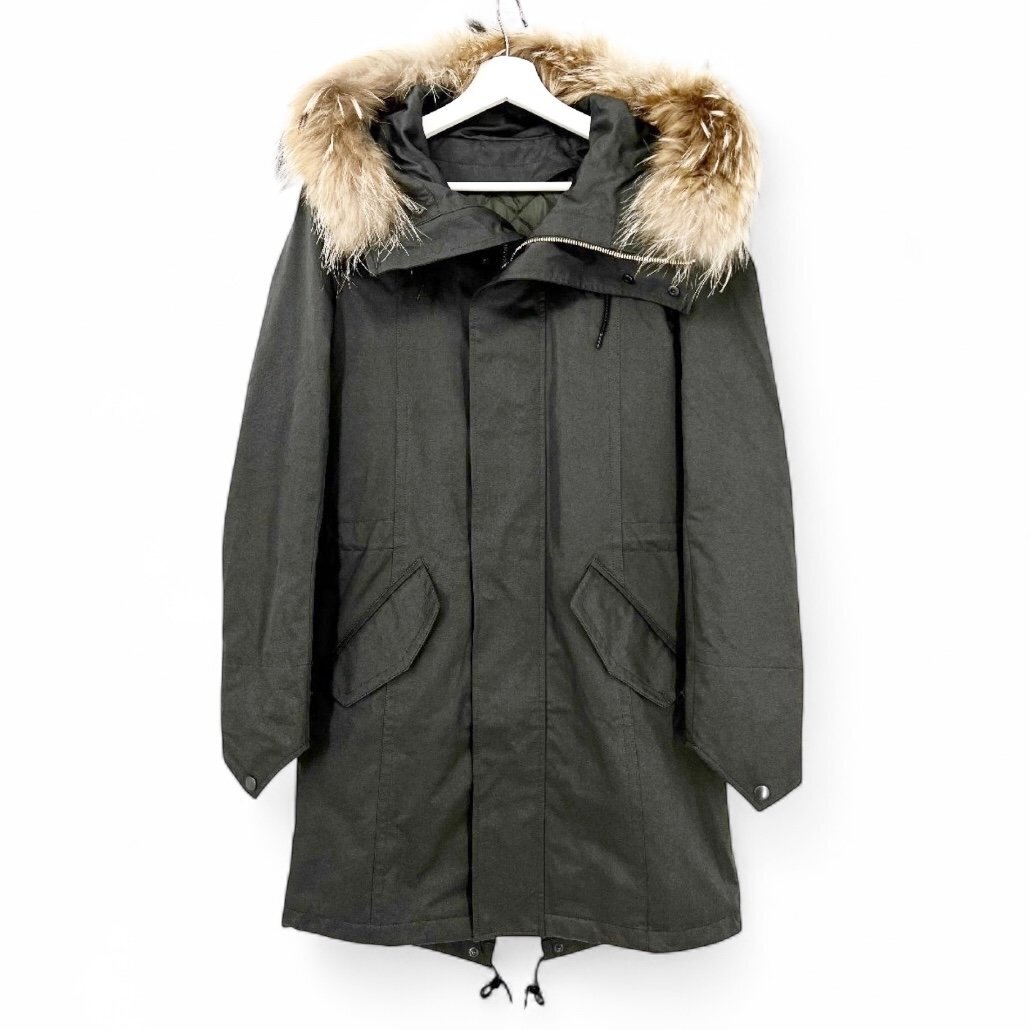 - 未使用品 SCHLUSSEL シュリセル 定番 コットン ツイル ロング ミリタリー モッズ コート 光沢感 ファー キルティングライナー付 2/M カーキ