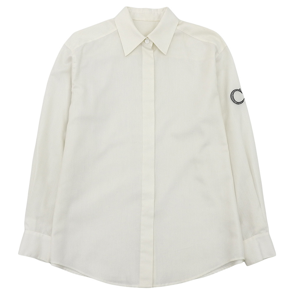 > CHRISTIAN DIOR クリスチャンディオール 袖CD刺繍 ブラウス トップス レディース オフホワイト 9 90’s ヴィンテージ