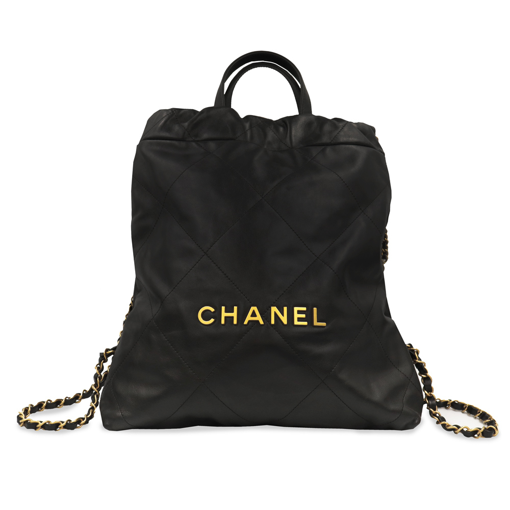 > (未使用 展示品)シャネル CHANEL 22 バッグパック リュック デイパック シャイニーカーフスキン ブラック ゴールドAS3859