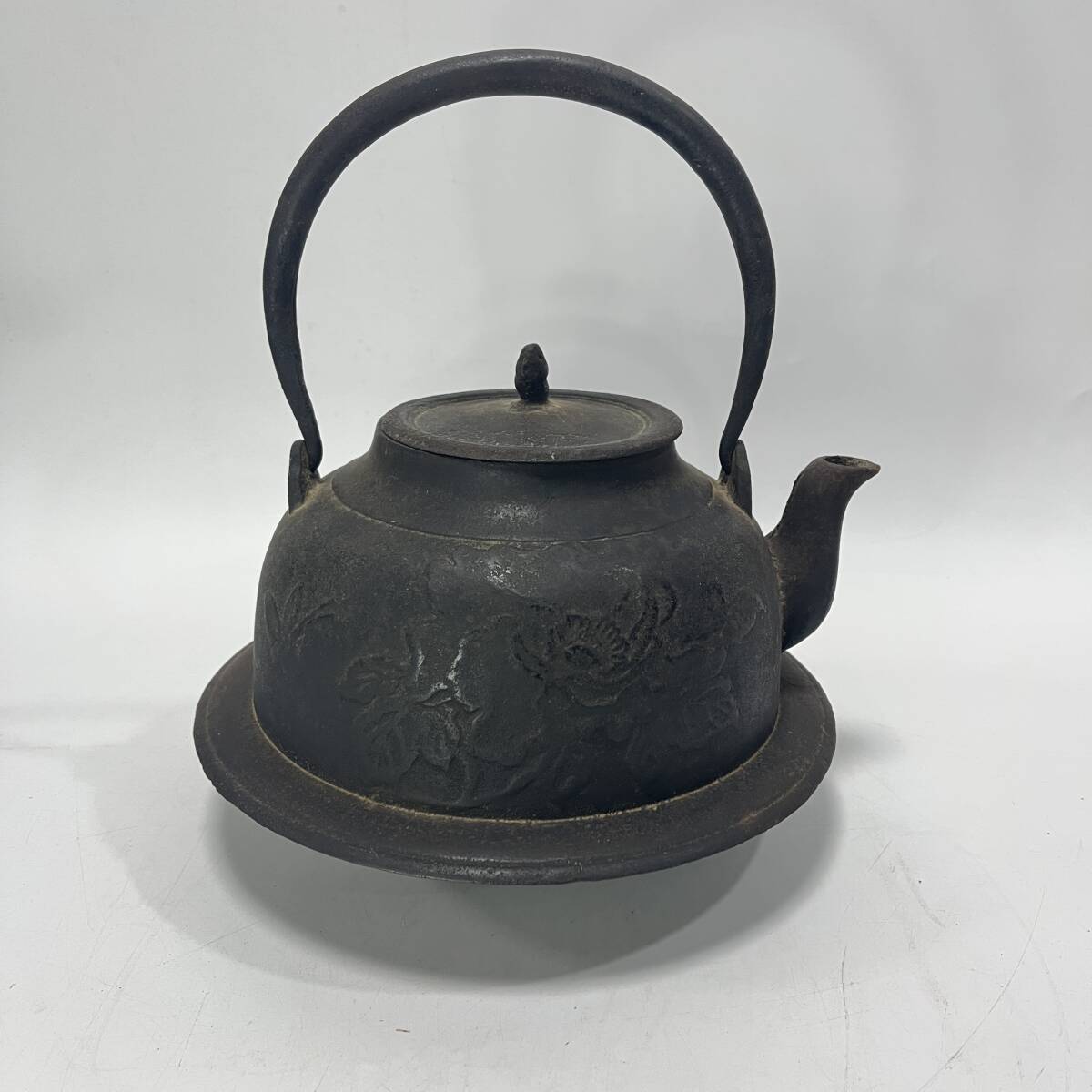 - 【63794V】南部鉄器 福盛堂 大鉄瓶 大きめ 花模様 煎茶道具 アンティーク 骨董品 ヴィンテージ 4.4kg 経年保管品