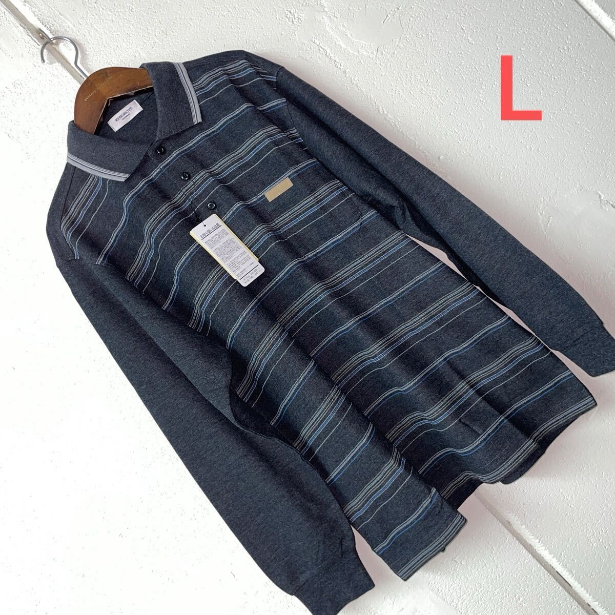 - Lサイズメンズ胸ポケット長袖ポロシャツチャコールグレー