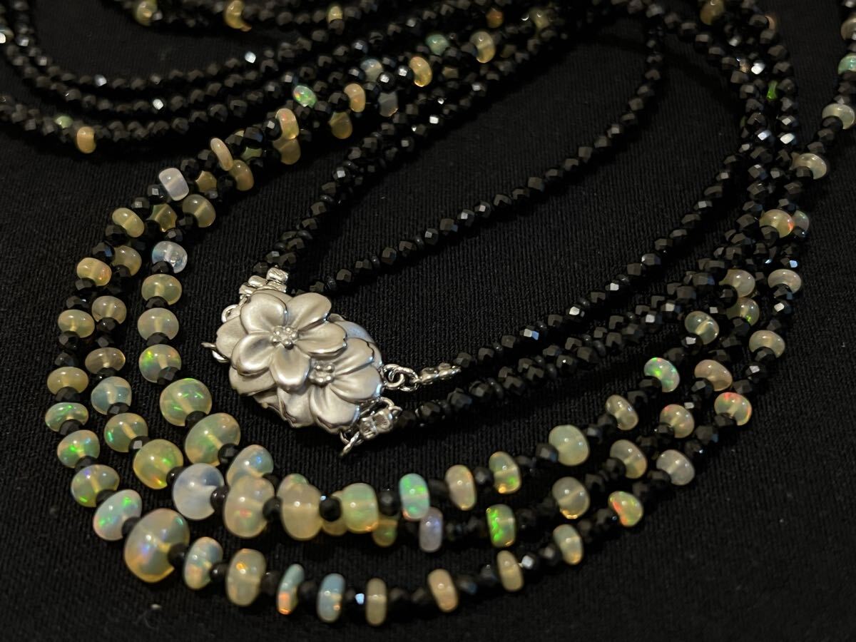 - オパール ブラックスピネル 3連 ロングネックレス ヴィンテージ アンティーク 天然石 カラーストーン