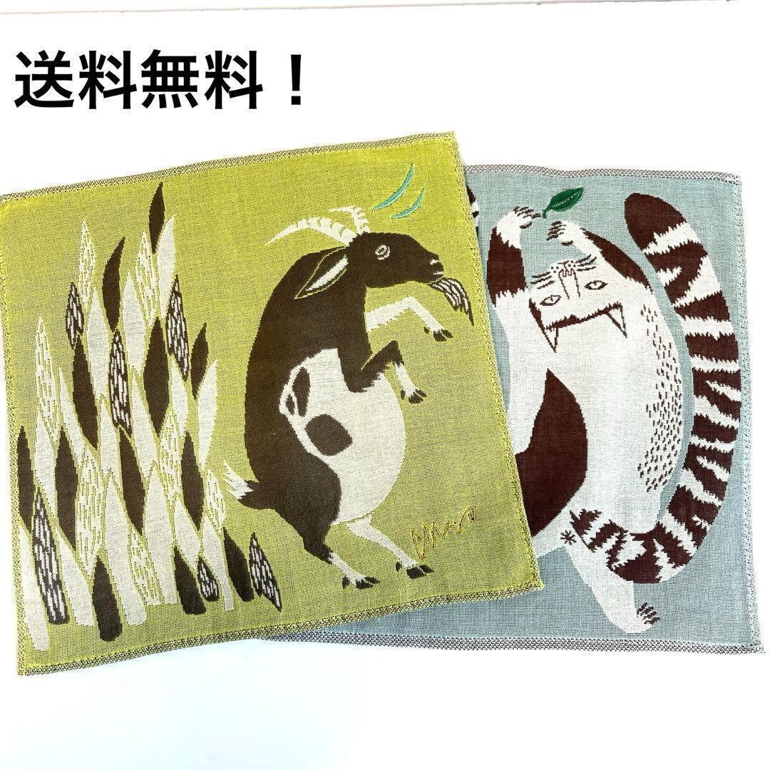 - 森田Miw 3重 ガーゼ ハンカチ 2枚セット ヤギ ネコ 新品未使用