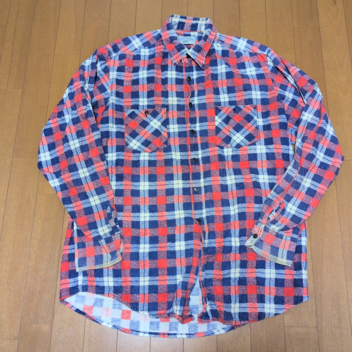 - 90s EAGLE CREST ネルシャツ プリントネルシャツ プリネル ヴィンテージ 古着 マケドニア製 好配色 アメカジ 定番 長袖チェックシャツ