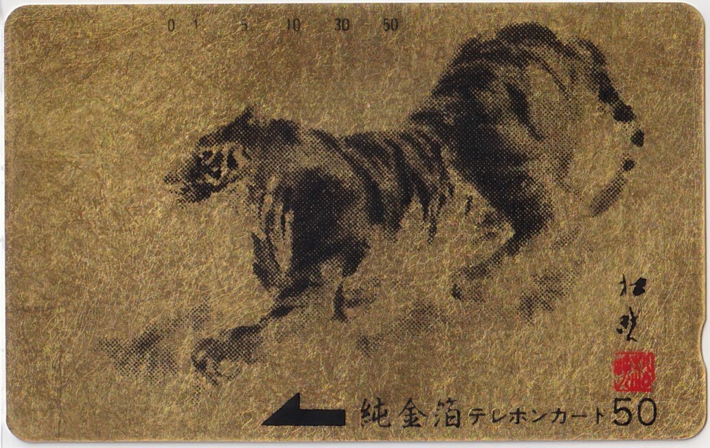 - =寅 虎= 「純金箔〜横」販売テレカ #w