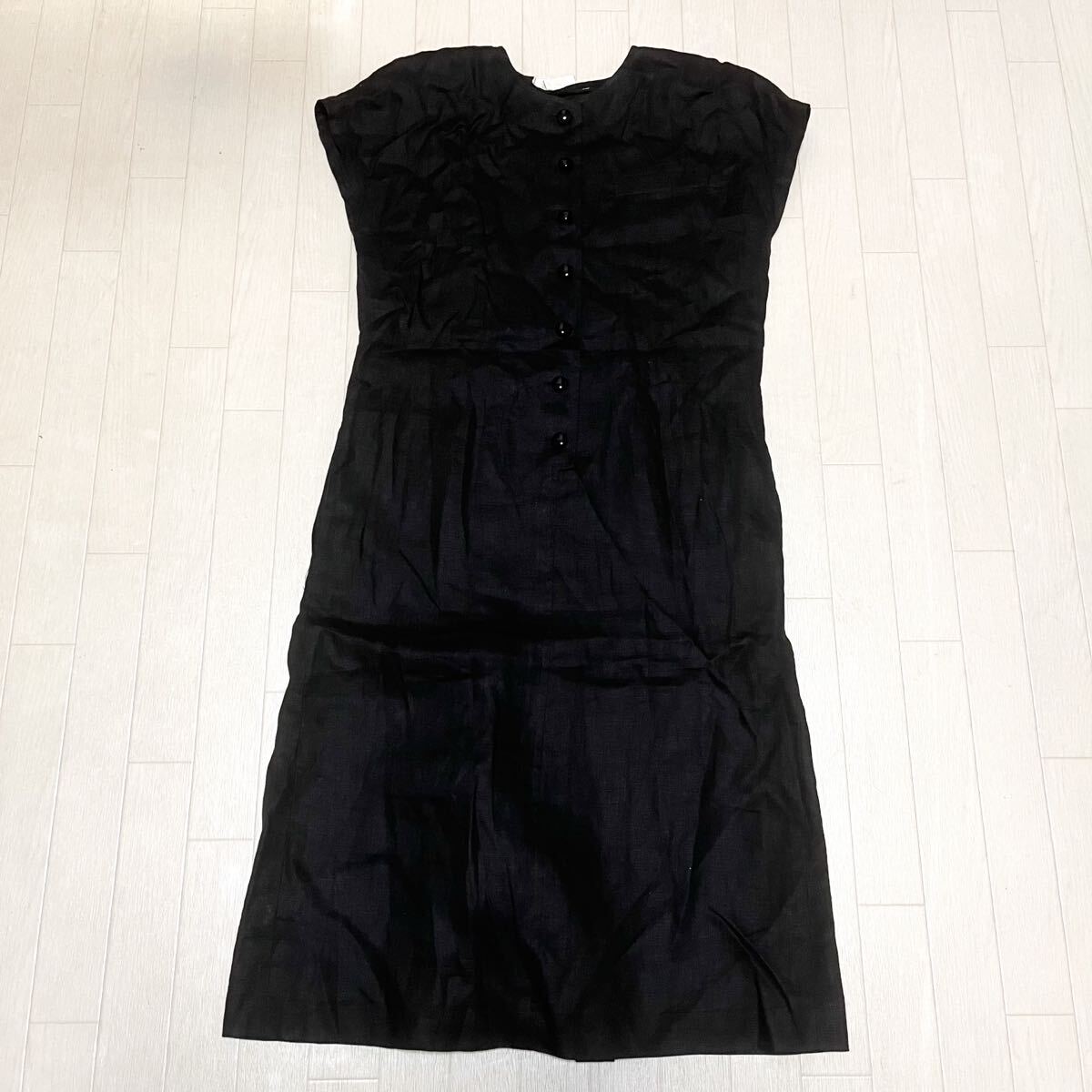 > 和844★ オールド mila schon ミラショーン ロングワンピース ノースリーブ リネン 6/40 ブラック レディース