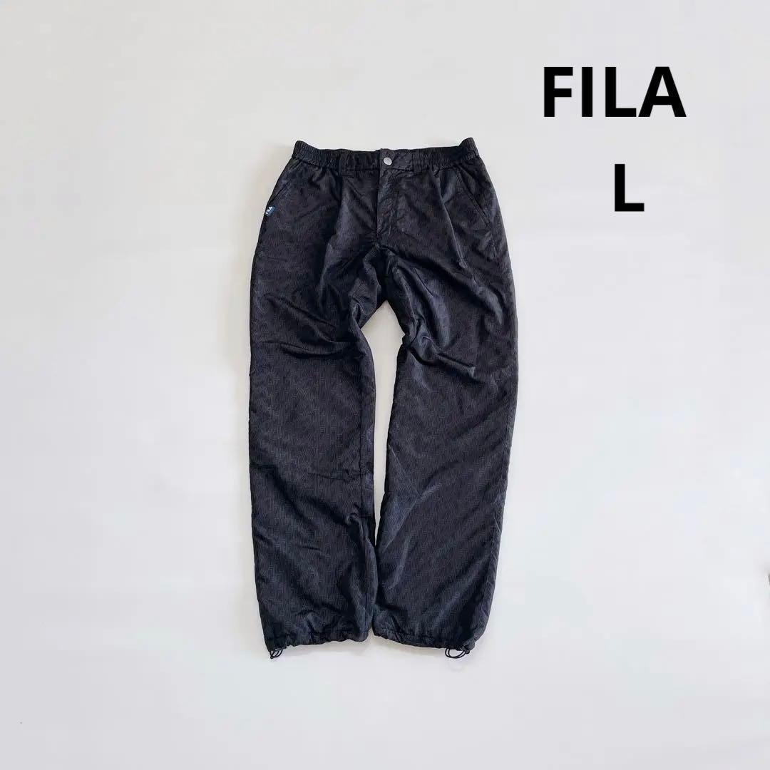 - FILA フィラ ゴルフ 中綿ロングパンツ L 総柄 ブラック 防寒