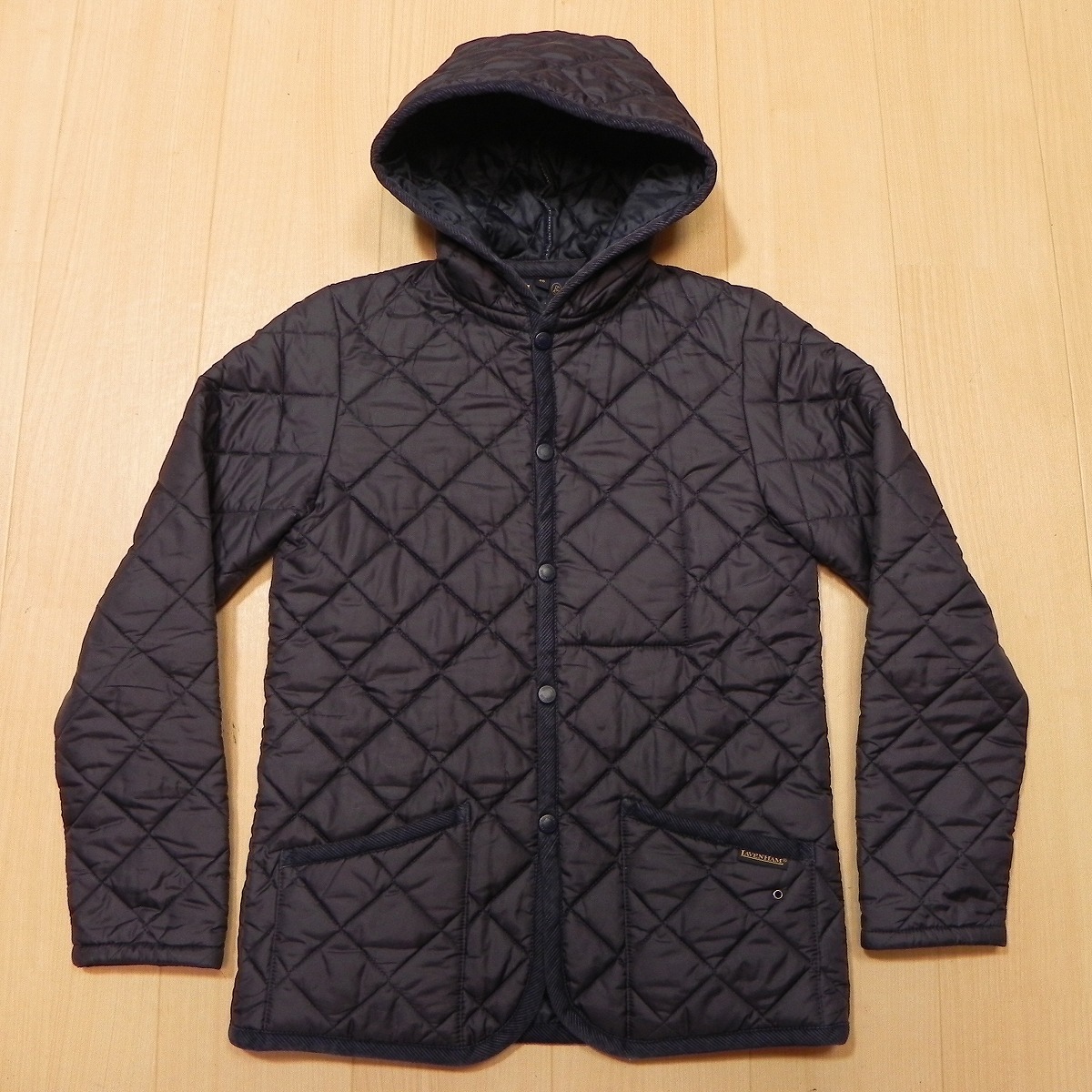 - ★ イギリス製 ラベンハム LAVENHAM キルティングジャケット ネイビー 紺 36 (48) フード付き パーカー レディース 古着 ★a