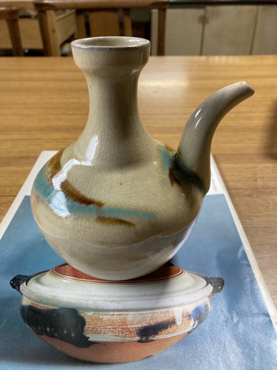 - 薩摩焼龍門司の名工川原軍次工房の三彩カラカラ猪口つき