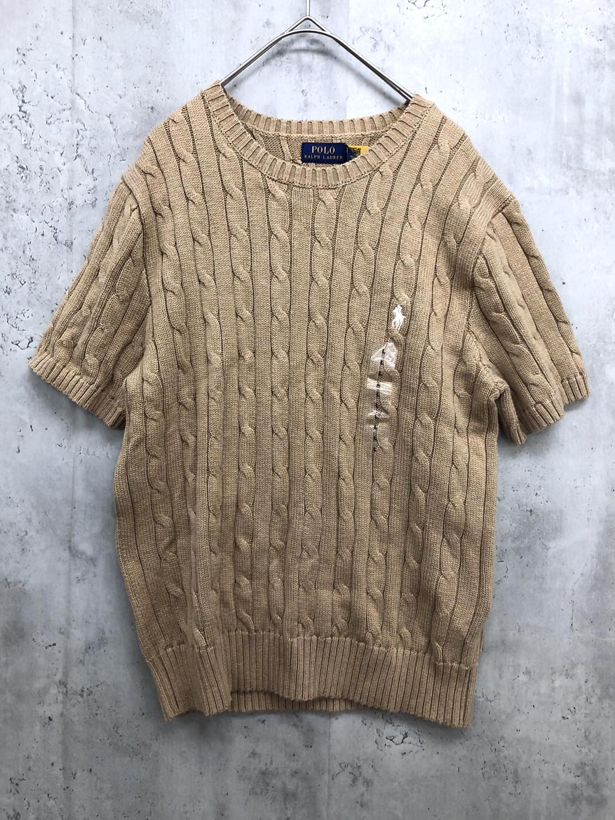 > ゆうパケットOK 新品 POLO RALPH LAUREN ポロ WMPOSWENC020798 ケーブル編み 半袖 ニット セーター sizeL(170/96A)/ベージュ ◇■◎