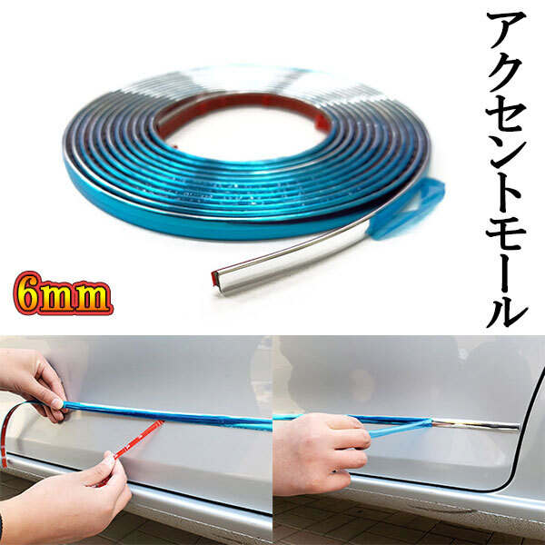> メッキモール 車用 マルチ ドアモール アクセントモール テープ ステッカー ボディ ミラー サイド バンパー 衝撃防止 幅6mm