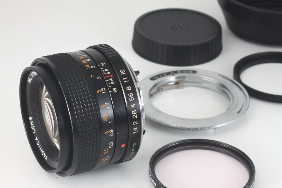 > ★超極上美品★YASHICA ML 50mm F1.4 C/YマウントC/Y-EOS変換アダプター付 ★完動品 光学極上★ #158