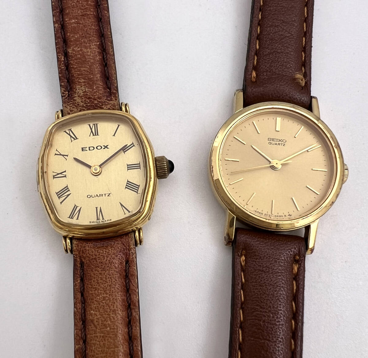 - 【電池交換済】腕時計2点セット SEIKO セイコー / EDOX エドックス ゴールド文字盤 アンティーク クォーツ レディース 現状品
