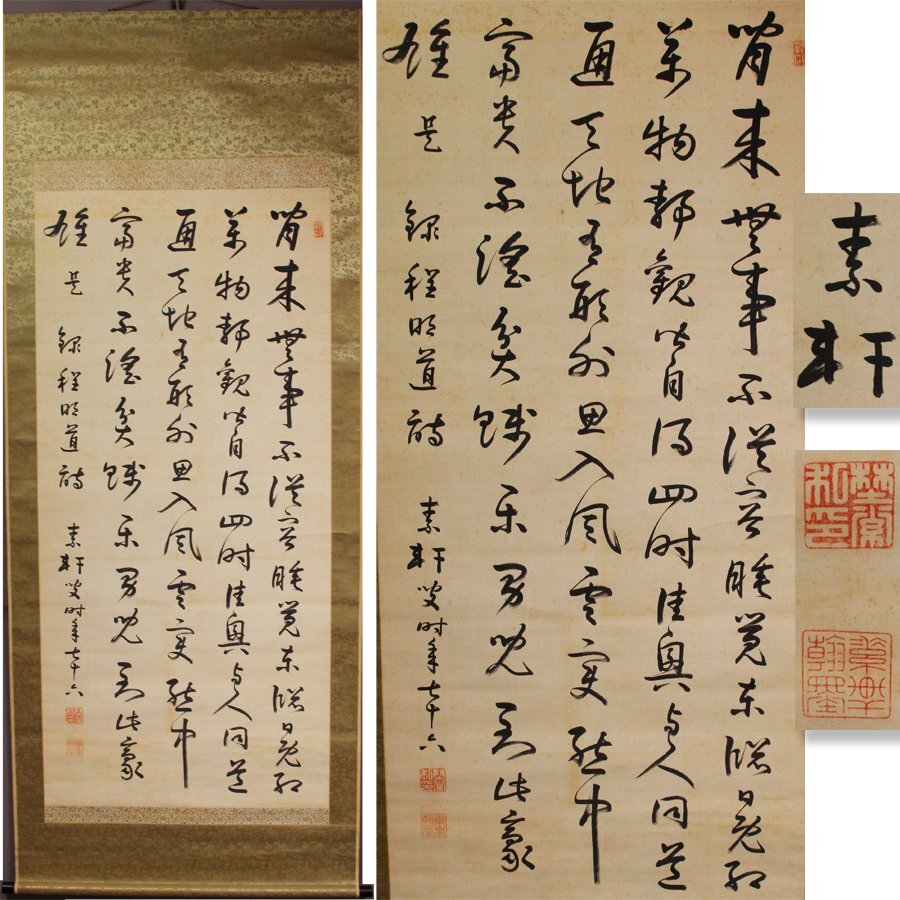 - 《源》【即決・送料無料】掛け軸 大幅 長州藩士 野村素介(素軒) 自筆 書 五行書/箱付