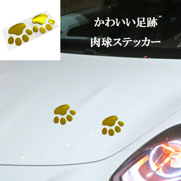 - 足跡 肉球 2個 シール デカール 3D ステッカー テープ カッティングシート 車 おしゃれ ドレスアップ 傷隠し ゴールド 送料無料